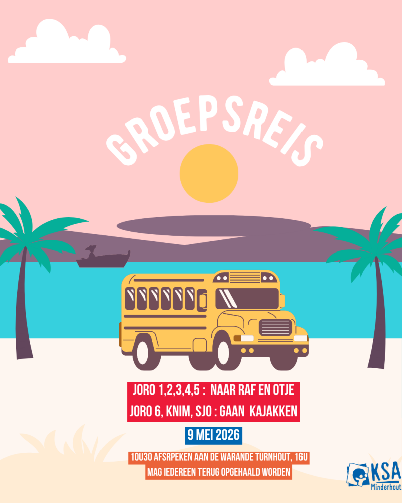 Het is weer tijd voor onze jaarlijkse groepsreis! Dit jaar kiezen we voor een iets goedkopere groepsreis, deze zal plaatsnemen op zaterdag 9 mei. JORO 1-2-3-4-5 gaan voor een dag vol plezier in Raf & Otje terwijl JORO 6-KNIM-SJO die dag zullen gaan kajakken.